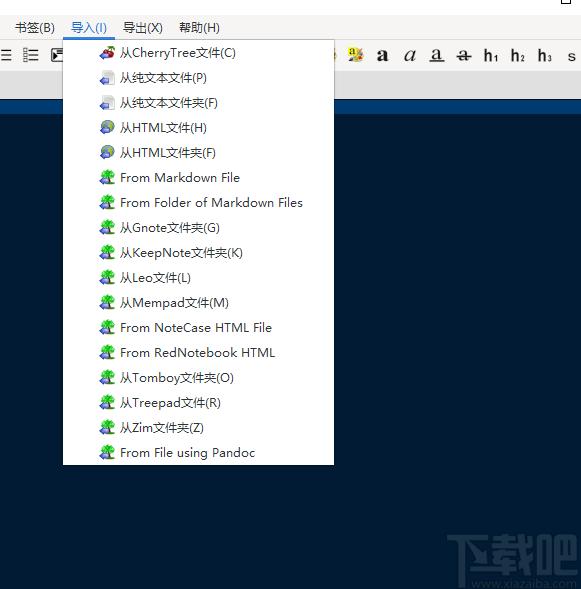进口从篮筐,cherrytree,EPIMHTML,Gnote的,keepnote,主题,knowit,mempad,notecase,rednotebook,假小子,treepad精简版,tuxcards,ZIM