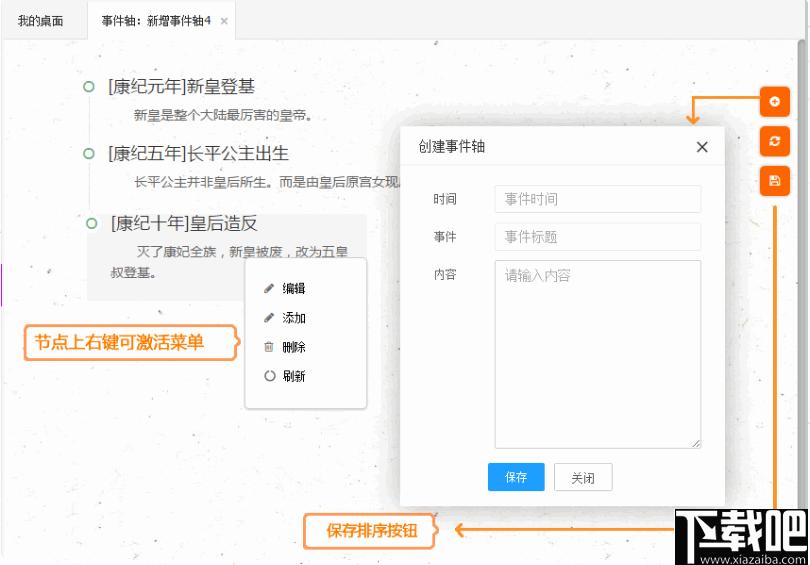 6、右击鼠标可以可以编辑文本,添加时间轴,只需要输入时间,时间,内容即可创建时间轴。